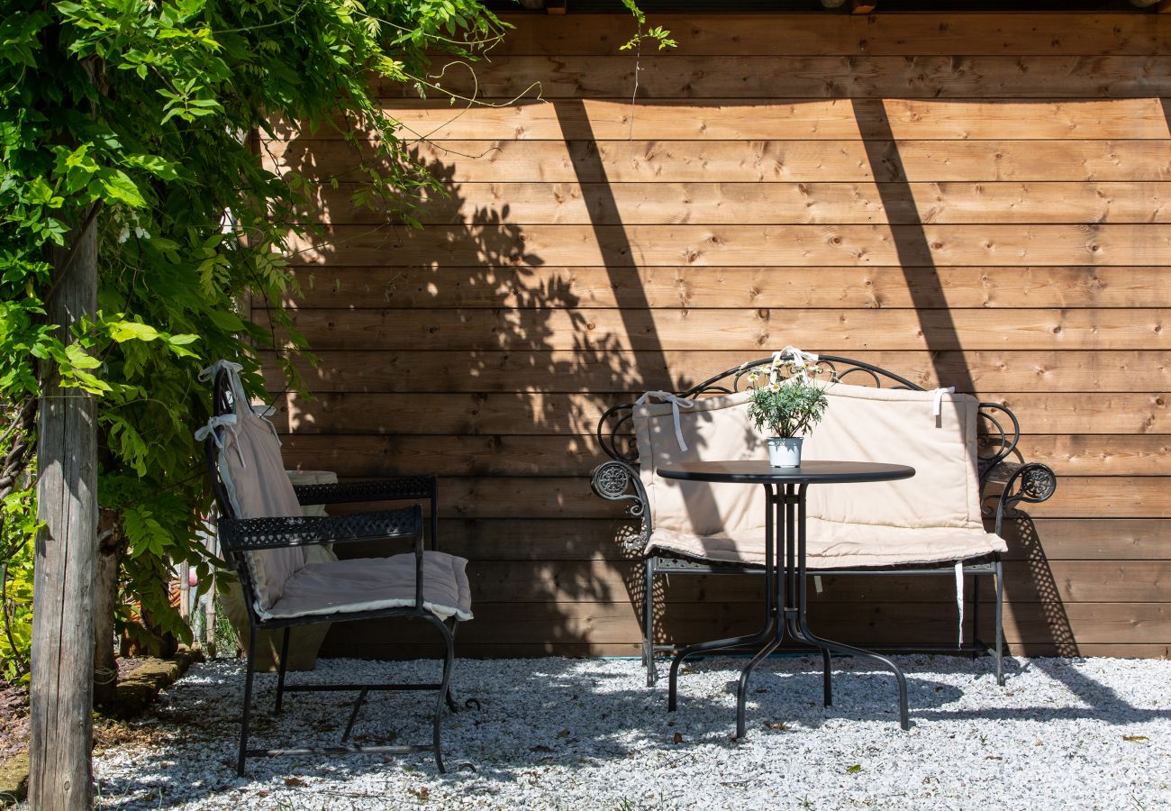 Each apartment has a private covered patio for outdoor dining. The rest of the garden and the beautiful swimming pool are only available to guests present in the property. "Casa Brigante" is located 5 km from Lucca, accessed by an unpaved country road of 200 m. The property, quiet and peaceful, is located in the open countryside but is close to all services, and to the town of Capannori. Lucca can be reached in 5 minutes by car, as well as the Lucchesi villas where you can make beautiful excursions on foot or by bike. "Giulia Apartment" is an apartment with independent entrance entirely on two level first and second floor, consisting of a bright living room with kitchenette, with a magnificent terrace facing the pool! The kitchen is equipped with everything needed for cooking, we also find a double bedroom, a master bedroom with queen bed, a bathroom, another bedroom with queen bed on second floor and a bathroom with shower! Internet connection and air conditioning are available.