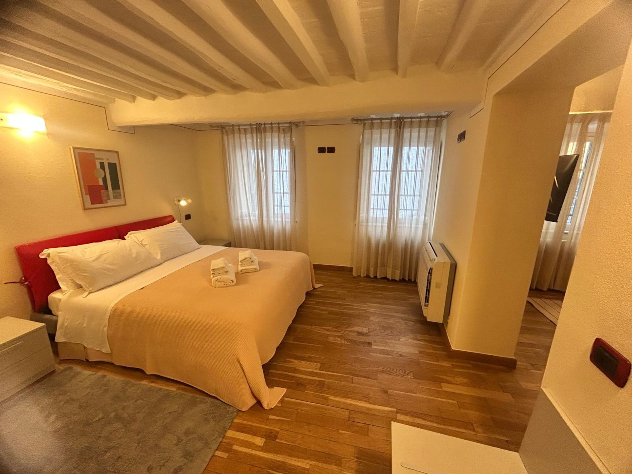 Bienvenidos al Palazzo Civetta, el apartamento Búho Real es un acogedor apartamento de dos habitaciones ubicado en el tercer piso de un característico edificio sin ascensor situado en el corazón de Lucca. Este encantador apartamento es perfecto para una pareja o un viajero solitario que desea sumergirse en la atmósfera auténtica de la ciudad toscana.