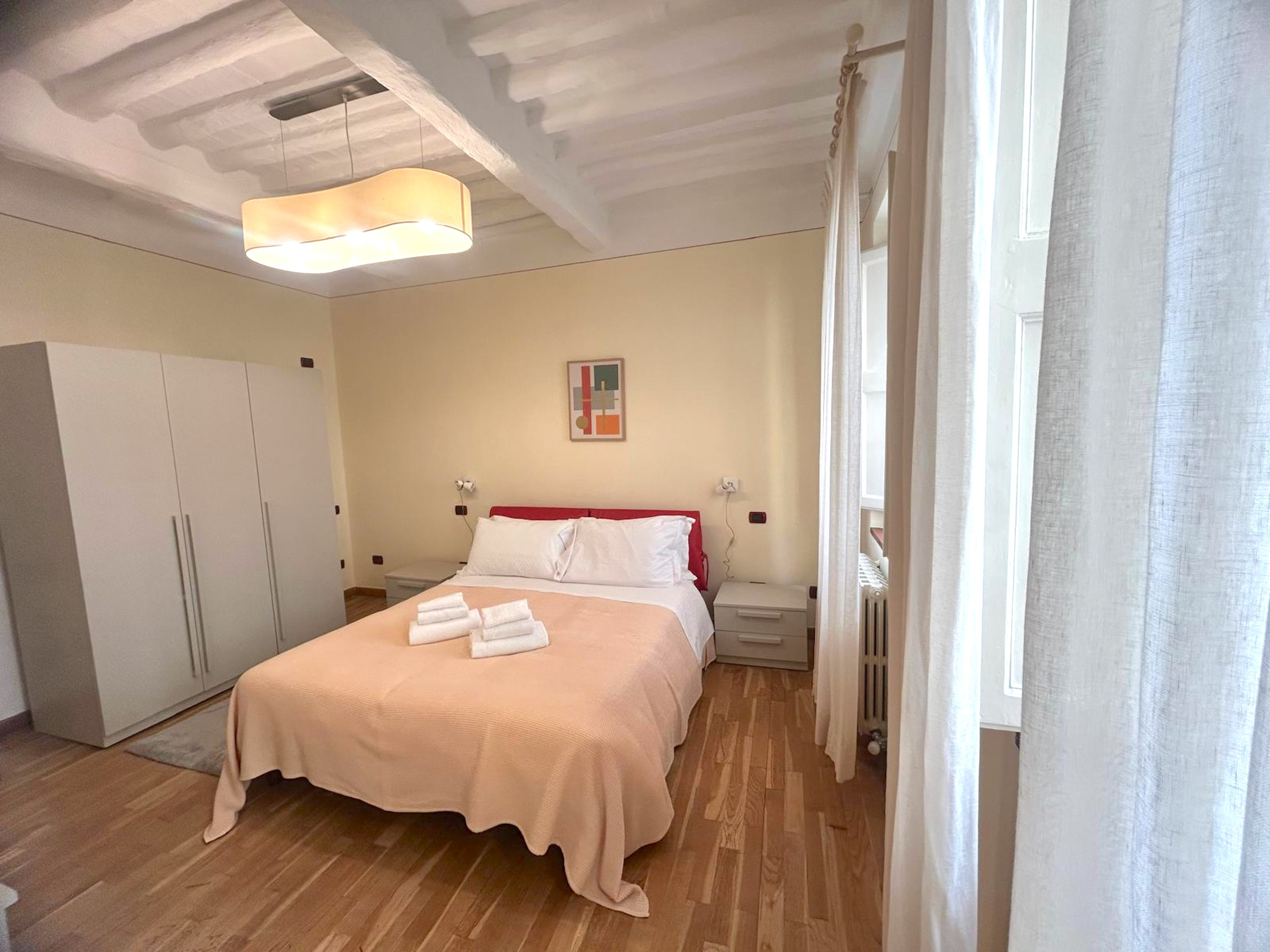 Bienvenidos al Palazzo Civetta, el apartamento Búho Real es un acogedor apartamento de dos habitaciones ubicado en el tercer piso de un característico edificio sin ascensor situado en el corazón de Lucca. Este encantador apartamento es perfecto para una pareja o un viajero solitario que desea sumergirse en la atmósfera auténtica de la ciudad toscana.
