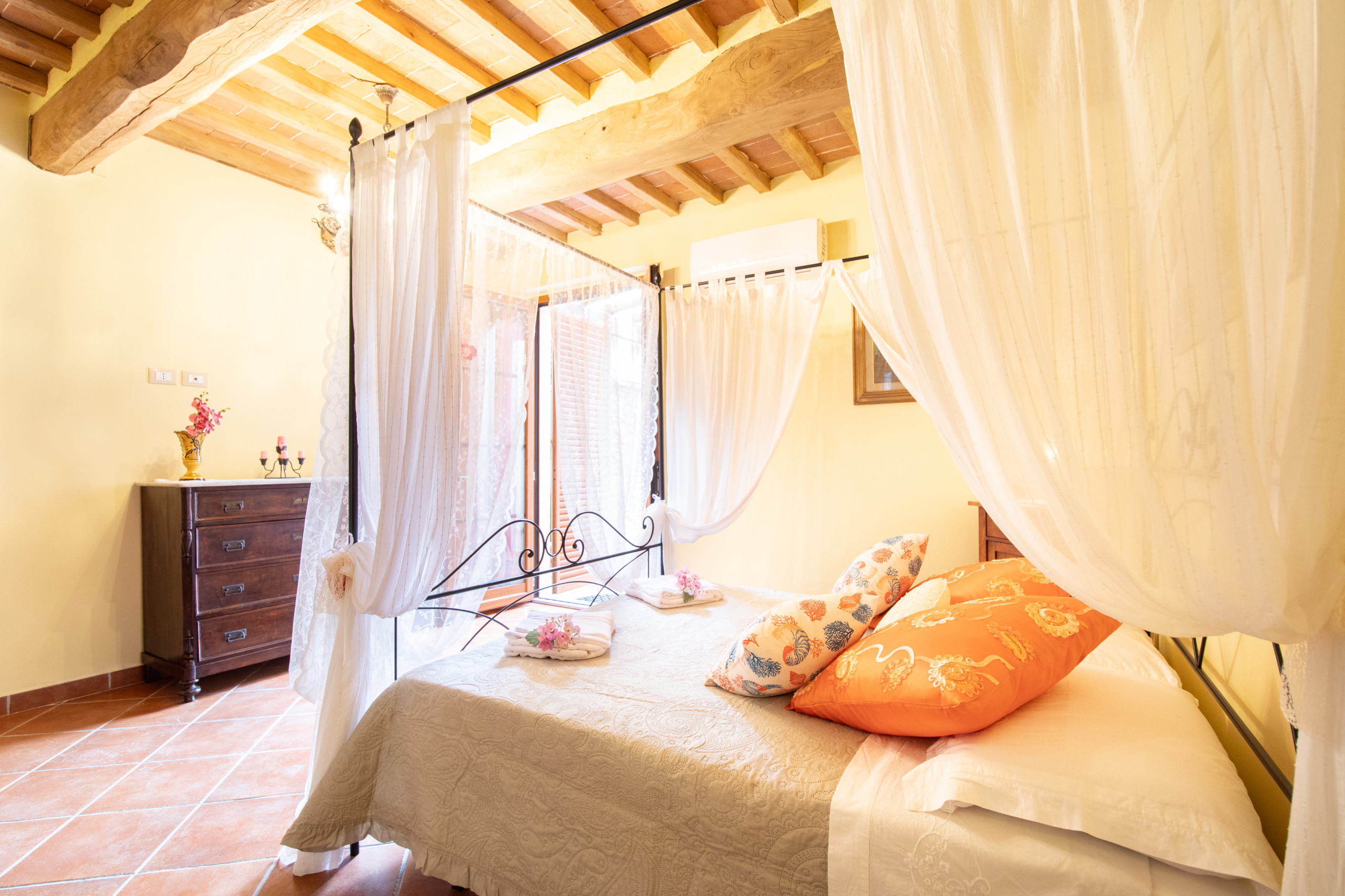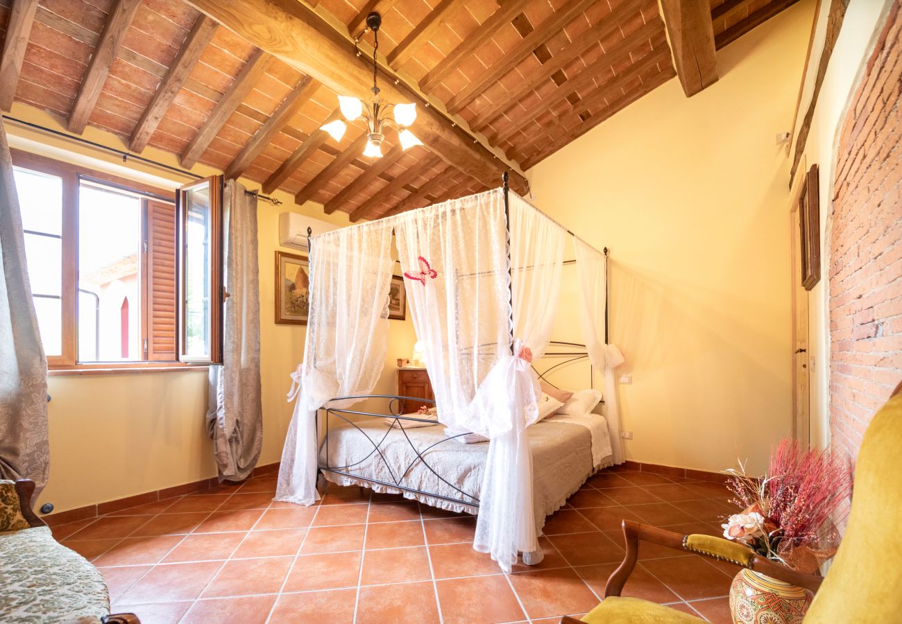 Né de la récupération d'une ferme historique dans la campagne toscane et de la passion pour notre terre, à deux pas des plus belles villes d'art de la région comme Lucques, Pise et Florence, l'Agriturismo Colle del Sole est idéal pour ceux qui envie d'un séjour dédié au bien-être et à la détente. L'appartement Il Colle est situé au rez-de-chaussée et au premier étage et peut accueillir jusqu'à six personnes. Il est composé d'un spacieux séjour avec une cuisine ouverte avec tout le nécessaire pour cuisiner et d'une chambre double au rez-de-chaussée. Au premier étage il y a deux grandes chambres doubles et une salle de bains. Dehors, il y a un espace avec une table pour manger en plein air. Dans le jardin adjacent se trouve une piscine commune avec un espace équipé de chaises longues et de parasols, depuis laquelle vous pourrez profiter d'une vue panoramique imprenable sur les collines environnantes.